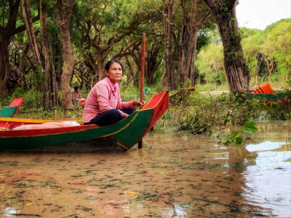 Vermoeid keek ze, zittend in haar boot, de peddel over haar knieën, de blik neergeslagen. Ze keek me niet aan, nodigde niet uit, wees ook niet af. Ze hield gewoon stil, haar gezicht tijdloos en toch getekend door een ontbering die ik niet kon peilen. Het leven hier bood weinig comfort—niet eens stevige vloeren om op te lopen, slechts water, slechts werk.
