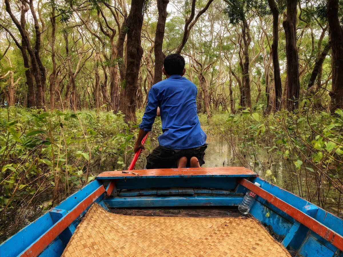 De tijd viel weg, er was geen besef van hoe ver of hoe lang, alleen het zachte klotsen van water tegen hout. Mijn stille gids leek verzwolgen door een eeuwige taak—alsof hij me overzette naar iets onbenoemds. Werd ik overgezet? Waarheen dan? De gedachte bleef hangen, tot er een andere opdook: er zouden wel eens krokodillen in dit water kunnen zijn.